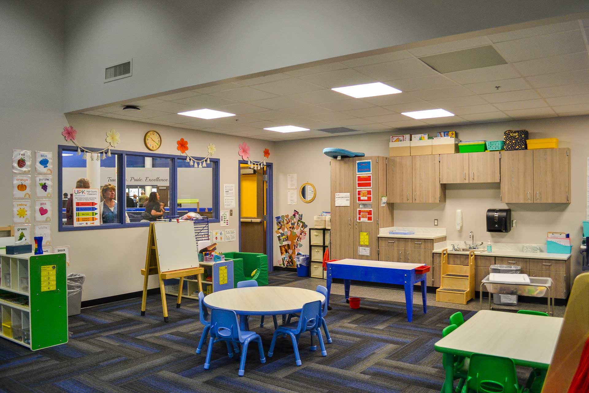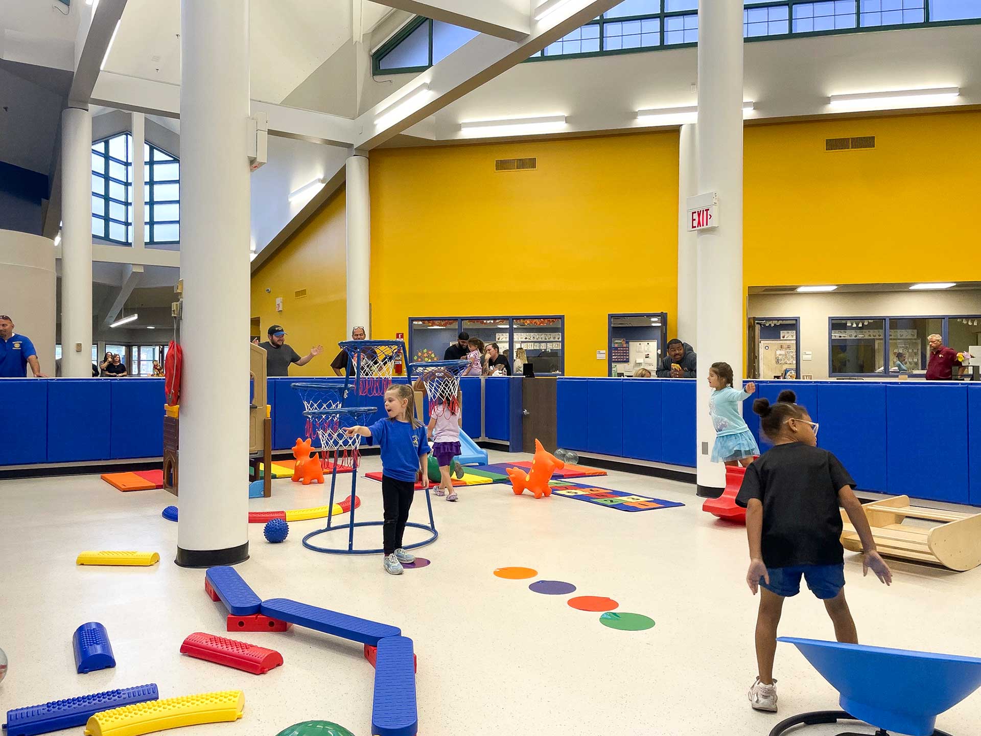 A new playground provides a safe outdoor space, and the center includes a food pantry to support the local community. The project also upgrades the building’s restrooms for accessibility and includes safety enhancements like video intercoms and access control systems at entrances. This revitalized space serves as a hub for early childhood development and family engagement in Brooklyn.