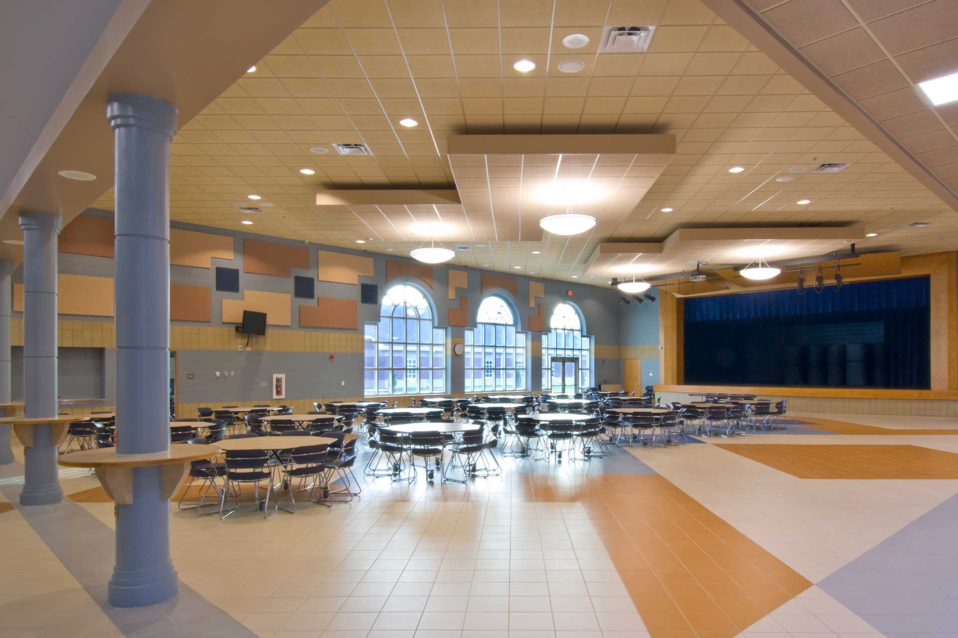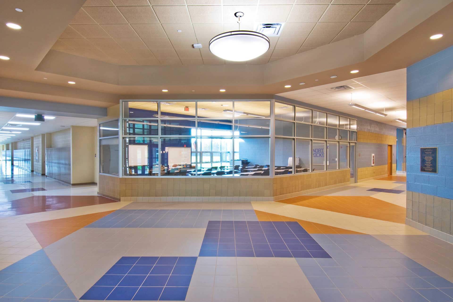 The building features academic core areas, administrative offices, and specialized spaces for art, music, and family & consumer sciences. It also includes a gymnasium, full-service kitchen, and a cafetorium with a stage. Sustainable design elements, such as a geothermal system and energy-efficient lighting, enhance efficiency and long-term performance.