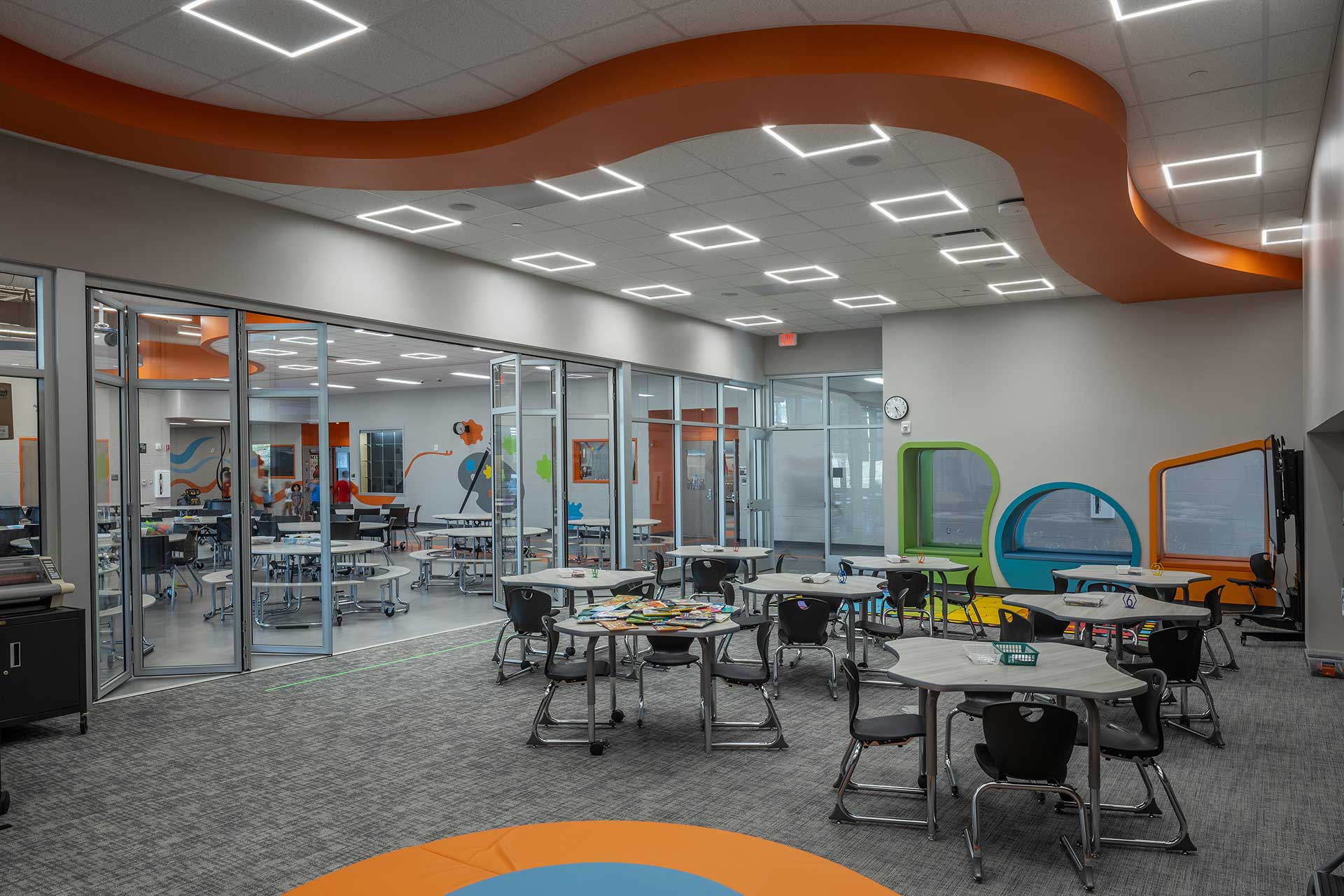 - Adaptive Classrooms: Full-view sectional doors and operable walls for seamless room configurations.